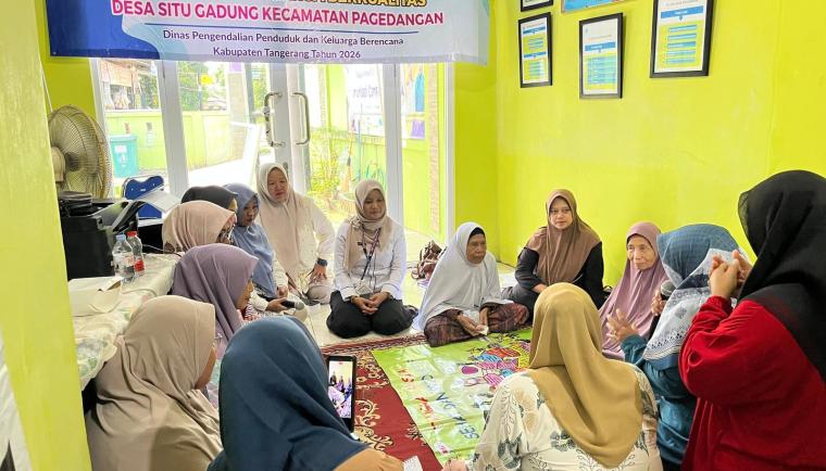 Tangerang - Dalam rangka meningkatkan pengetahuan dan keterampilan bagi kader/anggota kelompok Bina Keluarga Balita (BKB) dan Bina Keluarga Lansia (BKL) di Kampung KB, melalui Bidang Ketahanan dan Kesejahteraan Keluarga, Dinas Pengendalian Penduduk dan Keluarga Berencana (DPPKB) Kabupaten Tangerang melaksanakan pembinaan dan pendampingan kepada kelompok BKB dan BKL di Kampung KB Desa Situ Gadung, Kecamatan Pagedangan. Kegiatan ini dilaksanakan pada hari Rabu, 15 April 2026, bertempat di Desa Situ Gadung, Kecamatan Pagedangan.